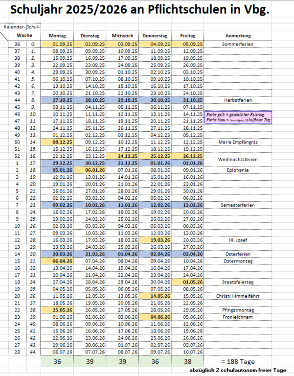 Herbstferien: | 26.10.2025 - 02.11.2025 | |
