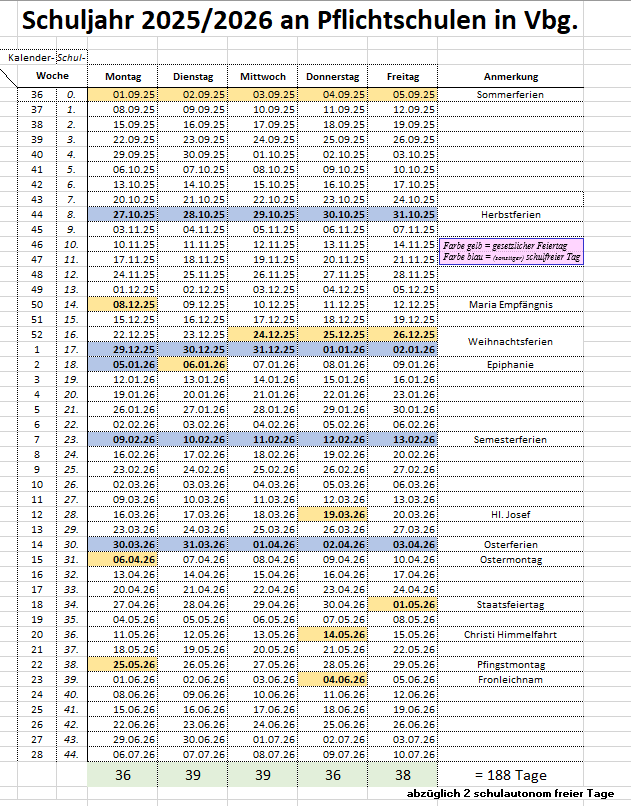 Semesterferien: | 09.02.2026 - 14.02.2026 | |